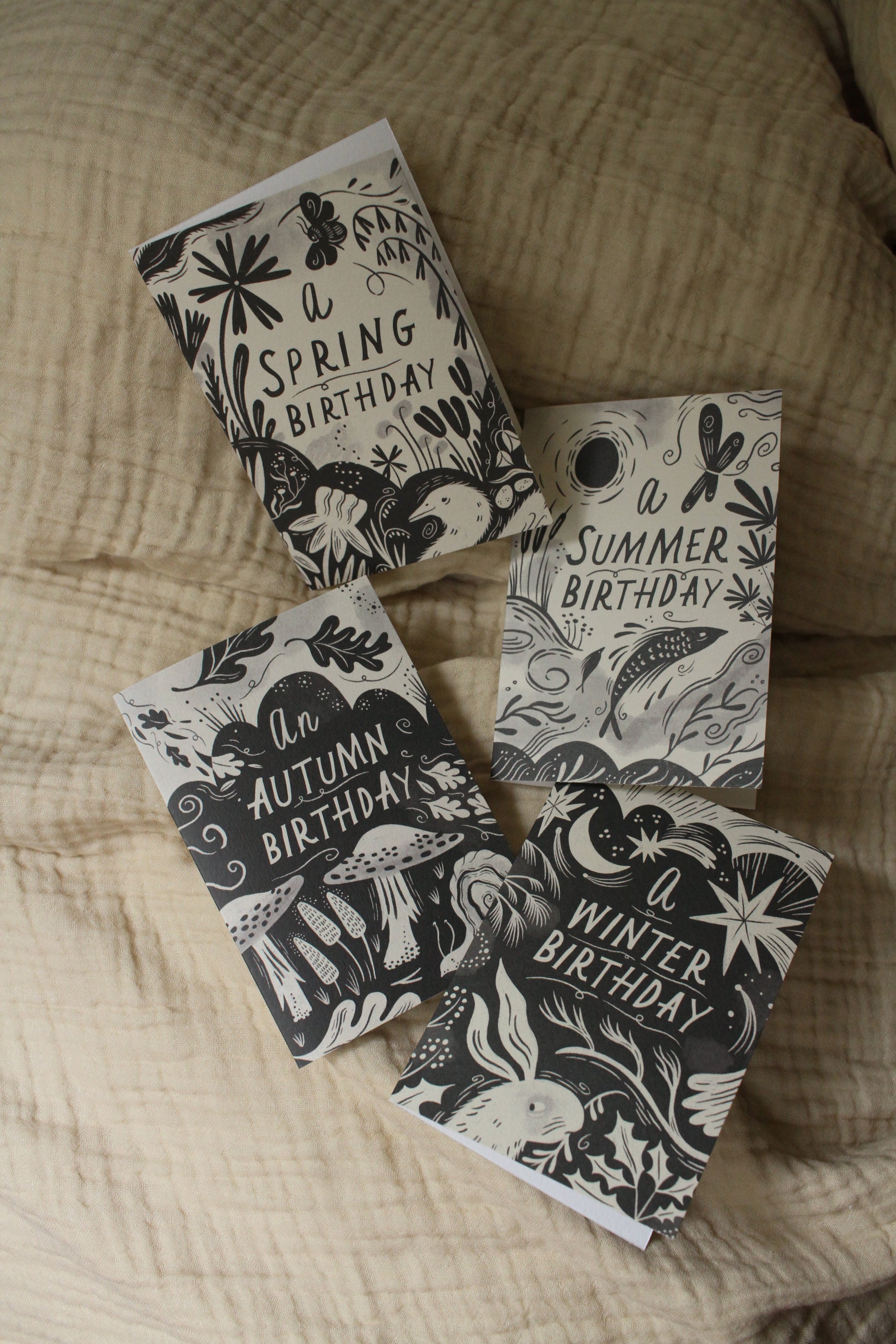 Send warm wishes with this peaceful winter birthday card by Lauren Marina. Featuring quiet seasonal details in her distinctive monochrome illustration style, perfect for a birthday in the stillness of winter.